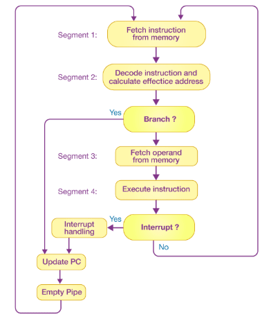 A four-stage instruction pipeline is illustrated in the block diagram above. The instruction cycle is divided into four parts: