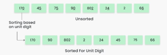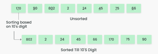 - It is a stable sorting algorithm, meaning elements with the same key value maintain their relative order in the sorted output.